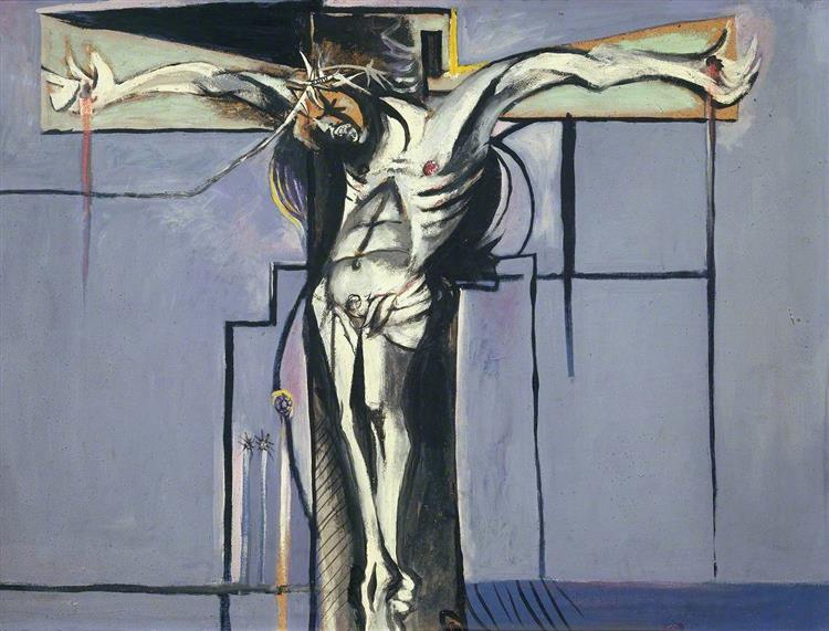 Canonicul Walter Hussey i-a comandat-o în 1944, în plin război, cu o singură condiție: să fie o Răstignire pentru lumea contemporană. Sutherland — pictor britanic format în tradiția peisagistică, convertit la catolicism — a acceptat și a produs ceva care nu semăna nici cu tradiționalul, nici cu avangarda.