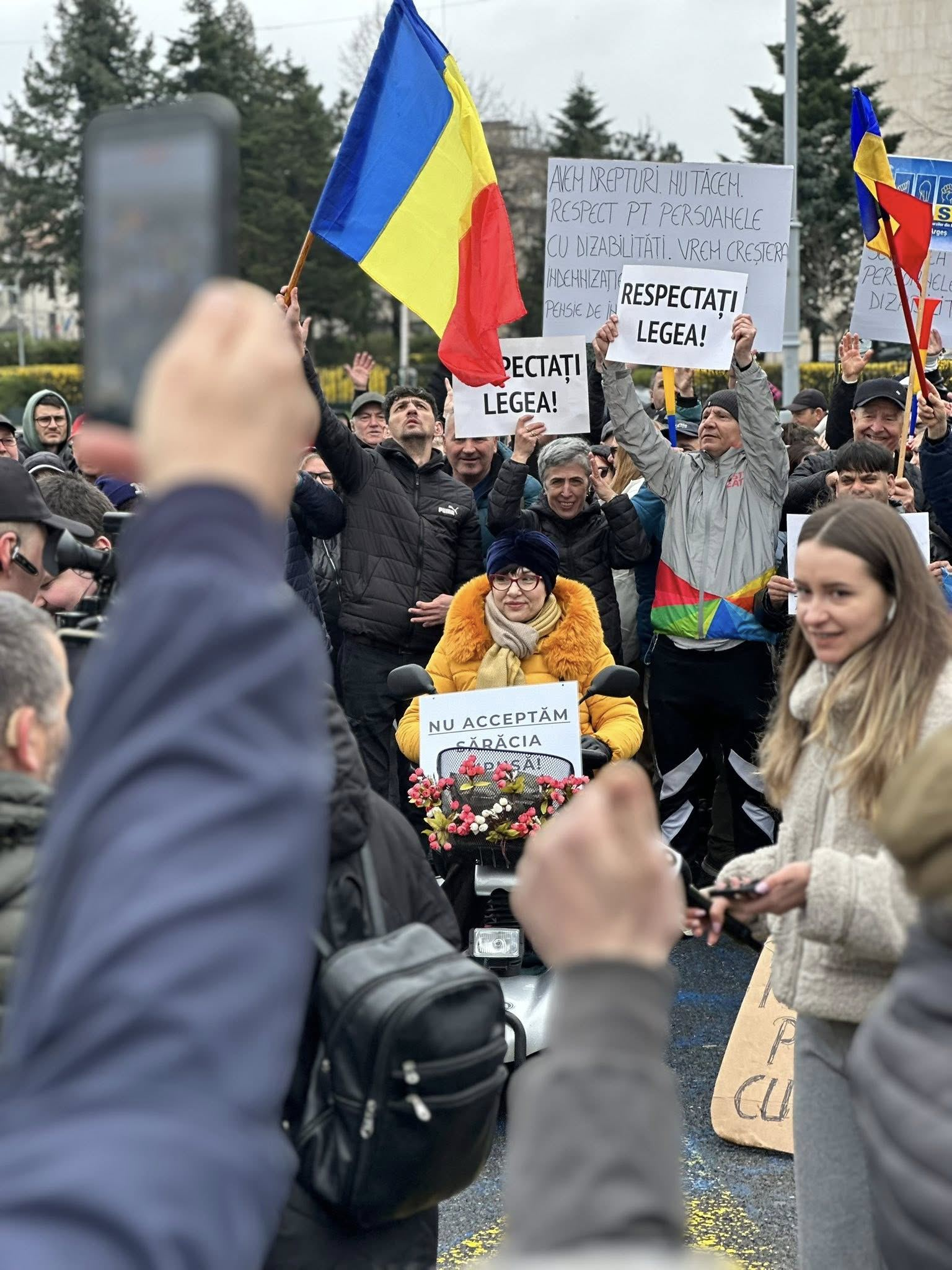 ”Aproximativ o mie de persoane cu dizabilități, asistenți personali, membri ai Sindicatului Asistenților Personali ai Persoanelor cu dizabilități au ieșit astăzi în Piața Victoriei, pe o vreme total neprietenoasă și rece, pentru că au ajuns la limita suportabilității. Principalele revendicări au fost: majorarea indemnizațiilor la un nivel care reflectă realitatea economică; revenirea la scutirile de impozite pentru locuință, teren și autoturism; anularea criteriilor abuzive de evaluare medicală, impuse prin Ordinul 2300 din 2025.”